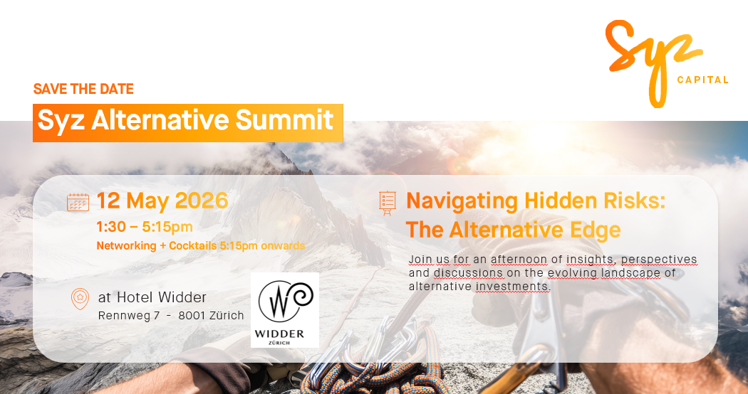 This marketing document has been issued by Syz Capital AG It is not intended for distribution to, publication, provision or use by individuals or legal entities that are citizens of or reside in a state, country or jurisdiction in which applicable laws and regulations prohibit its distribution, publication, provision or use. It is not directed to any person or entity to whom it would be illegal to send such marketing material.
